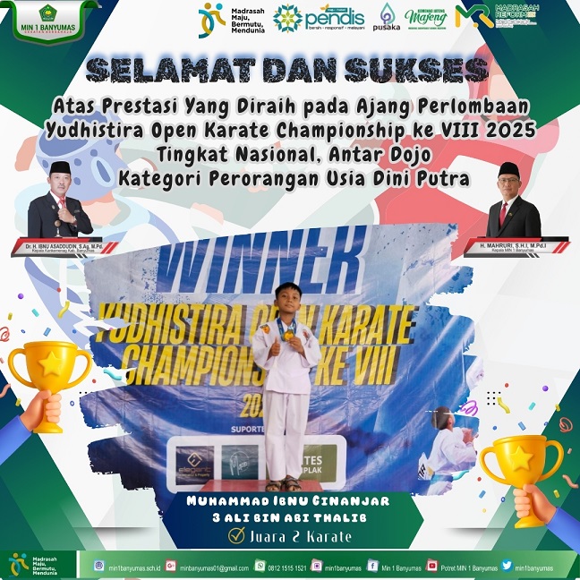 Banyumas, Prestasi membanggakan kembali ditorehkan oleh siswa-siswi Madrasah Ibtidaiyah Negeri (MIN) 1 Banyumas dalam ajang POPDA Kejuaraan Kabupaten (Kejurkab) 7 Taekwondo Banyumas T