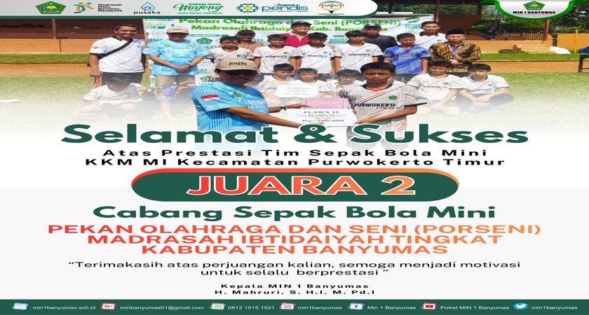 Tim futsal MIN 1 Banyumas berhasil meraih prestasi gemilang dengan menjuarai ajang Surya Fest 3.0 yang diselenggarakan oleh SMP UMP. Kompetisi ini diikuti oleh berbagai tim dari ti